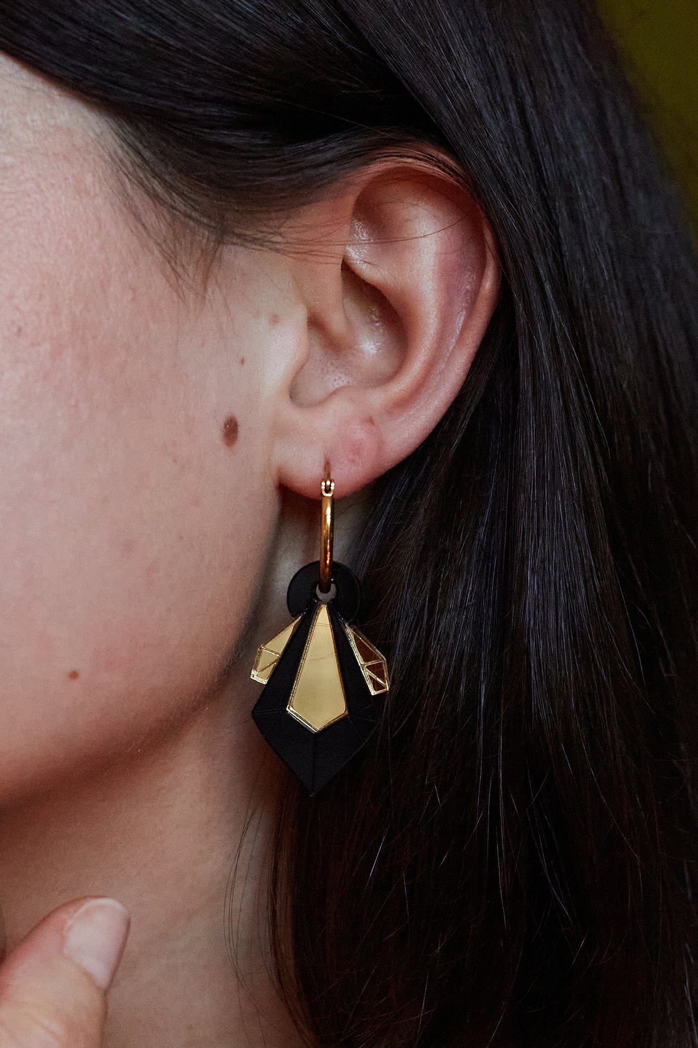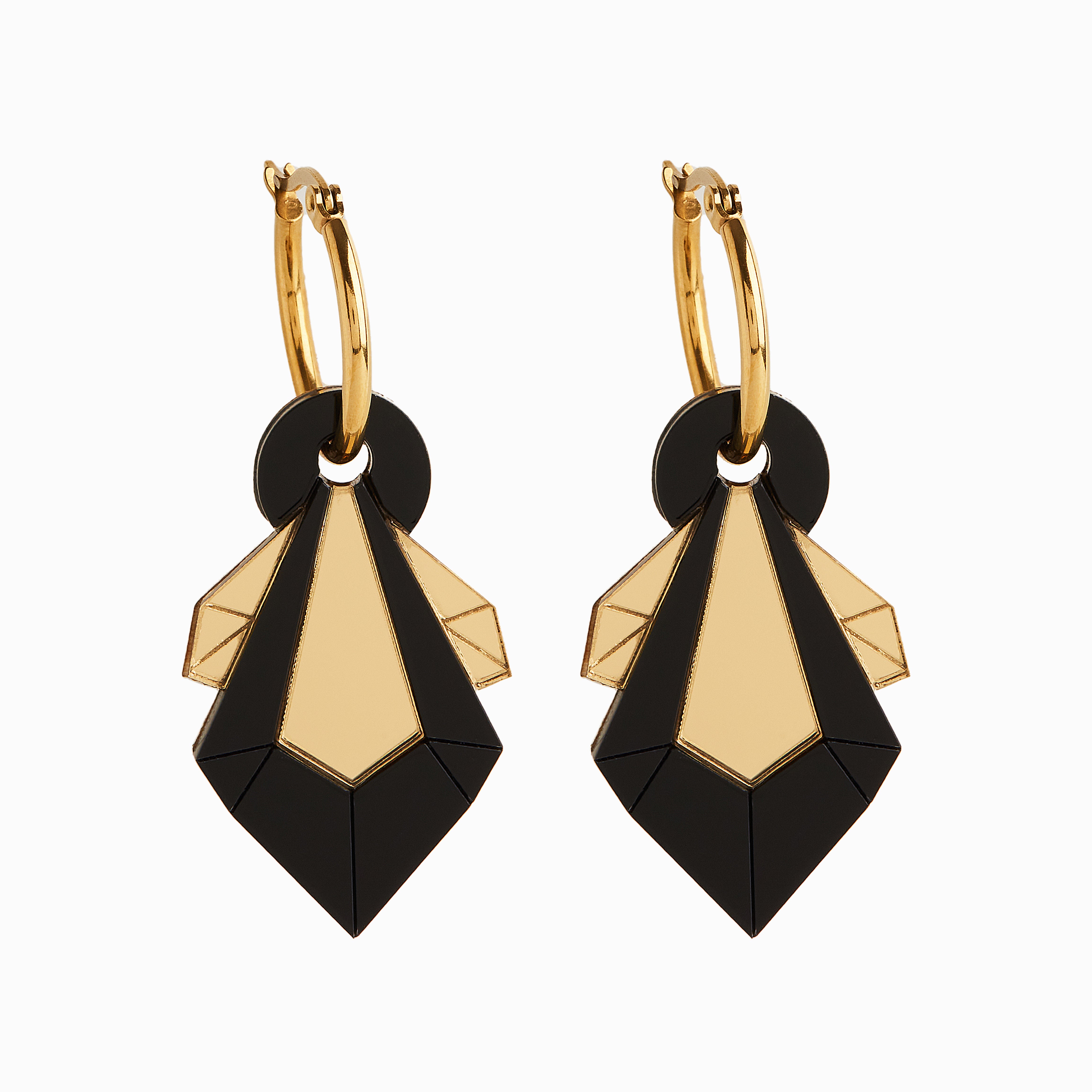 Geo Shard Hoop Earrings GOLD/BLACK