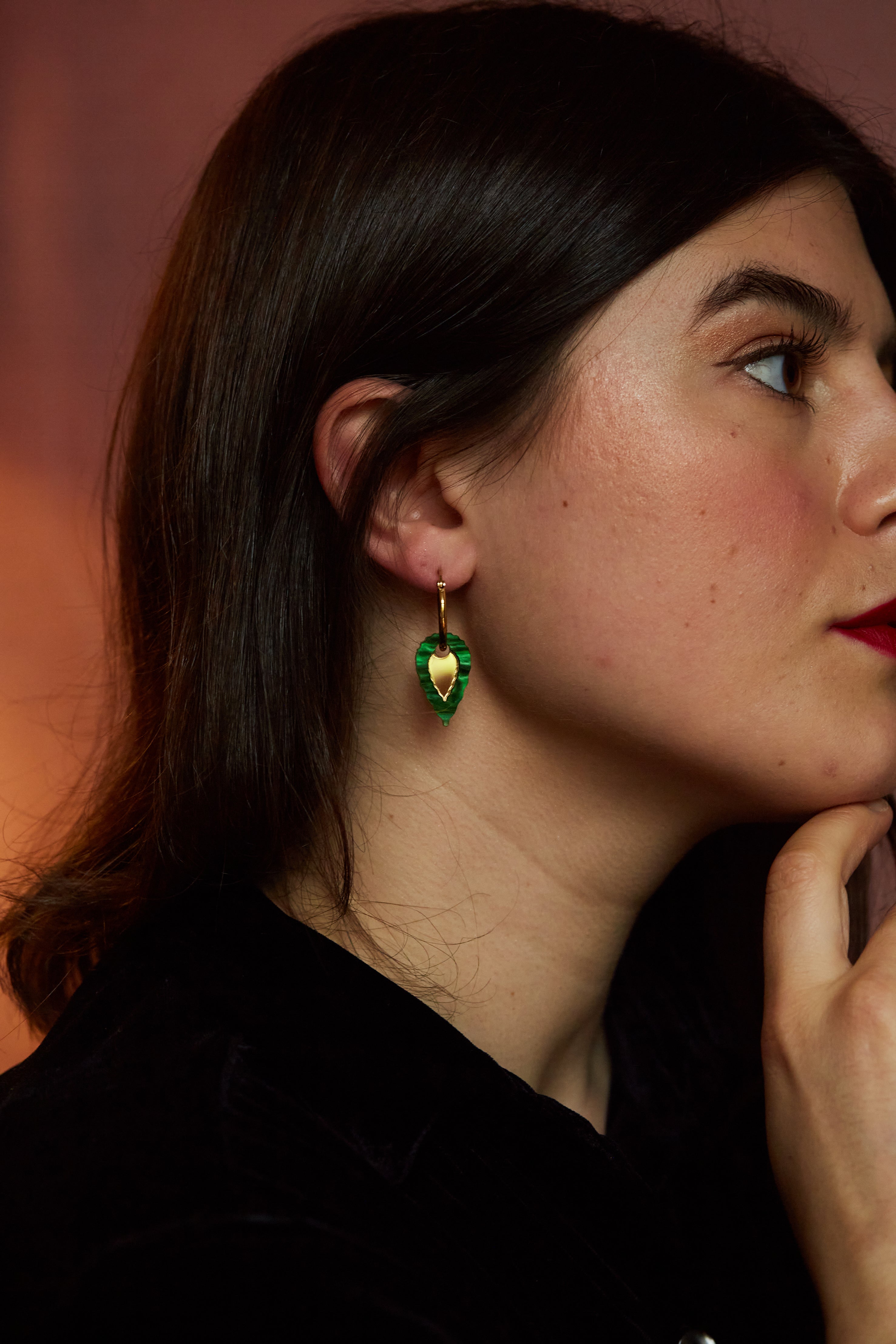 Folk Teardrop Hoop Earrings GREEN