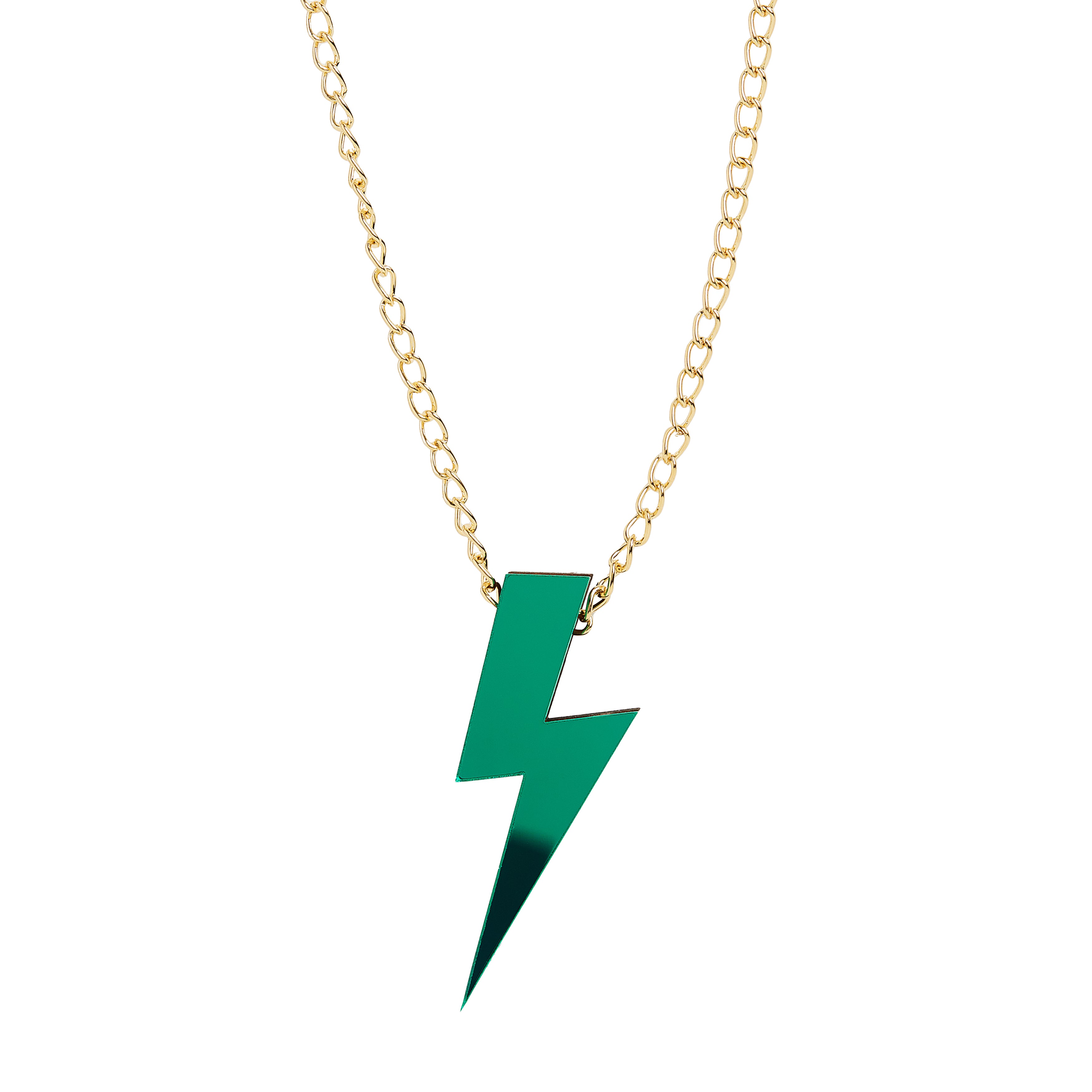 Green Statement Lightning Bolt Necklace
