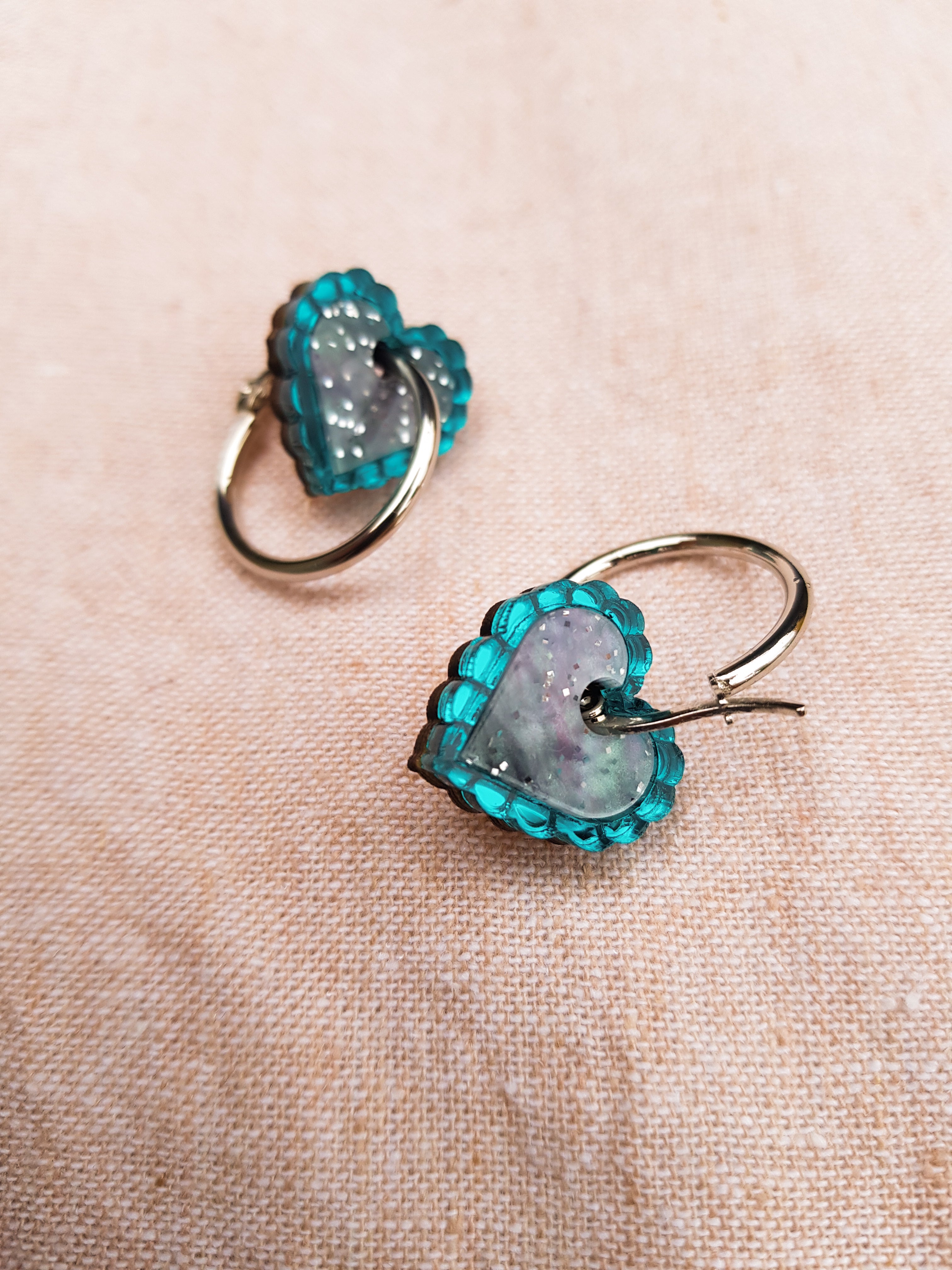 Heart Hoop or Stud Earring (teal and green marble)
