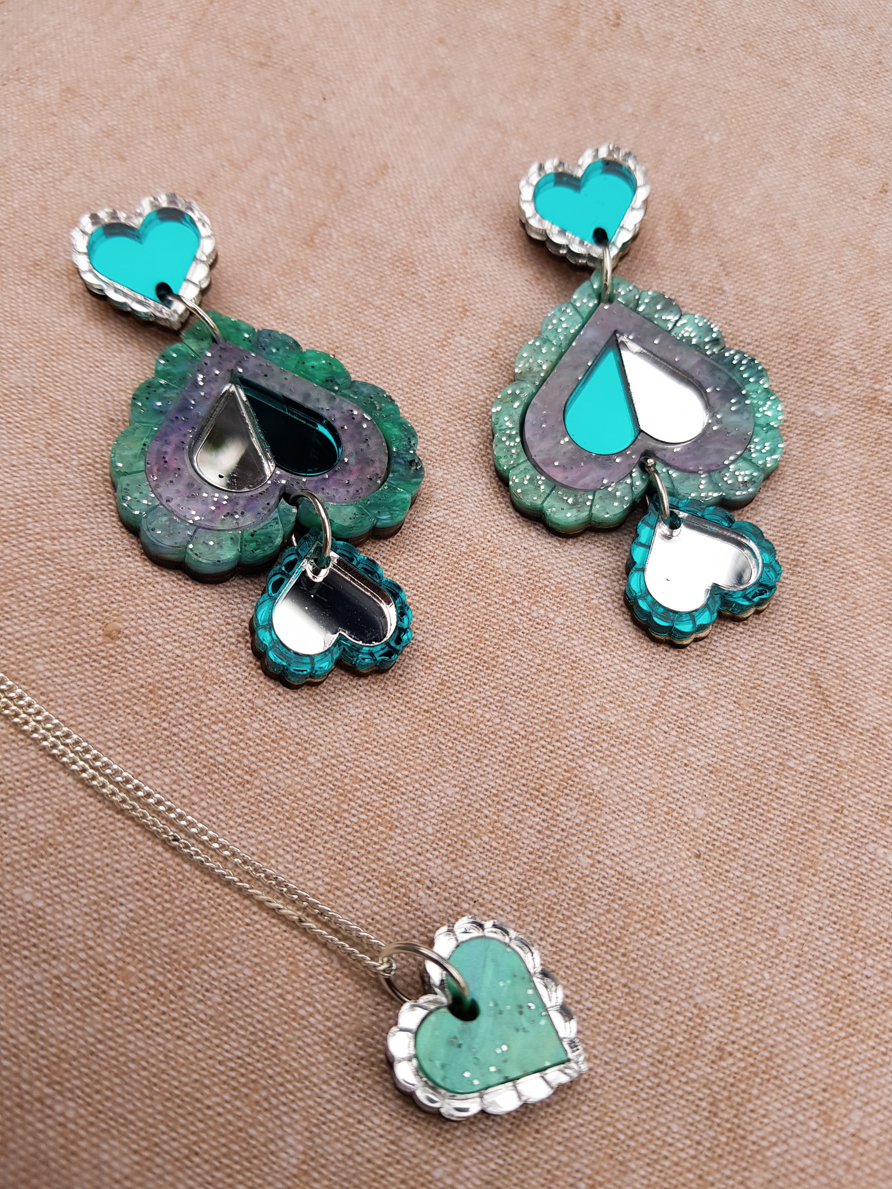 Heart Statement Earring (green)