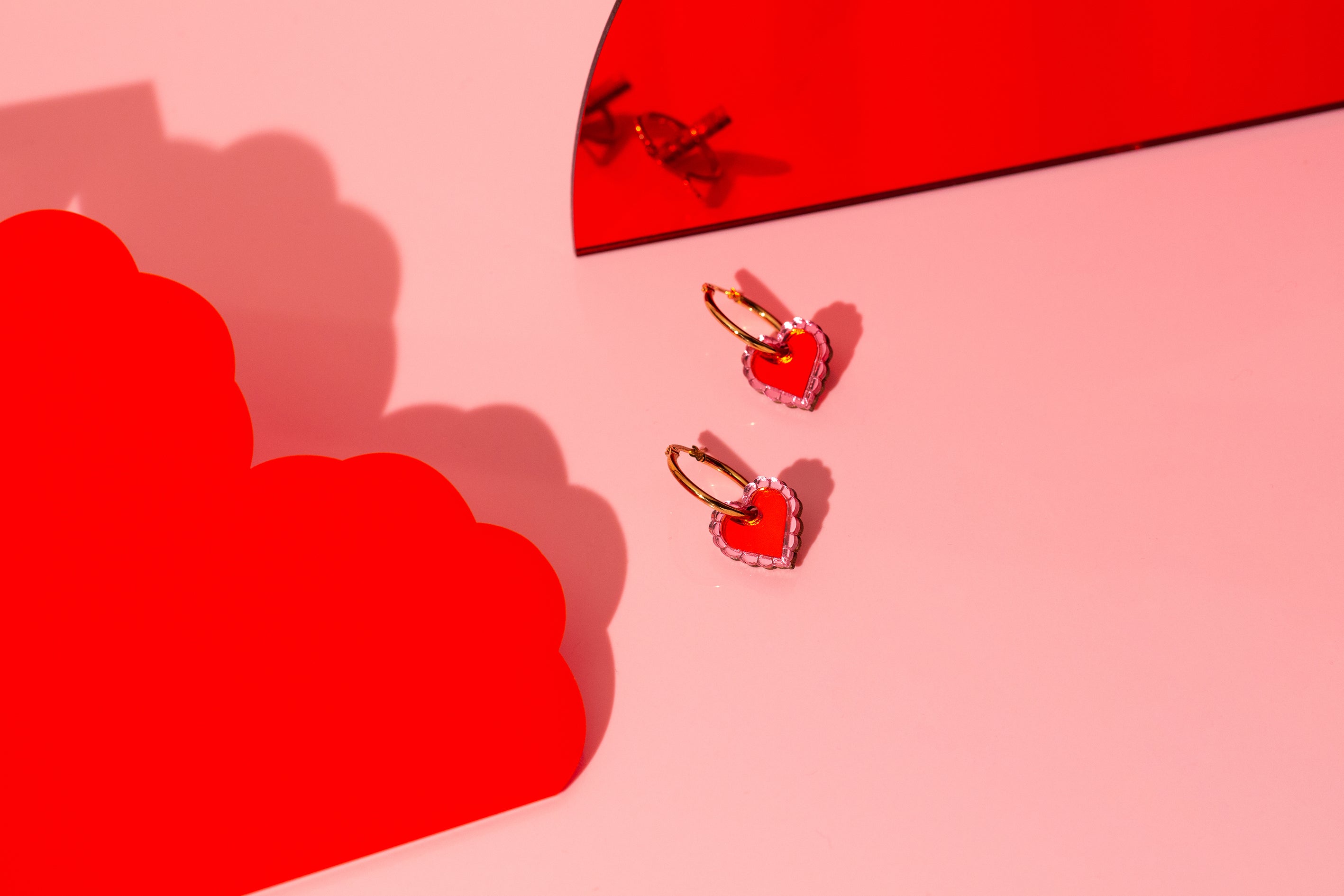 Heart Hoop or Stud Earring (pink & red)