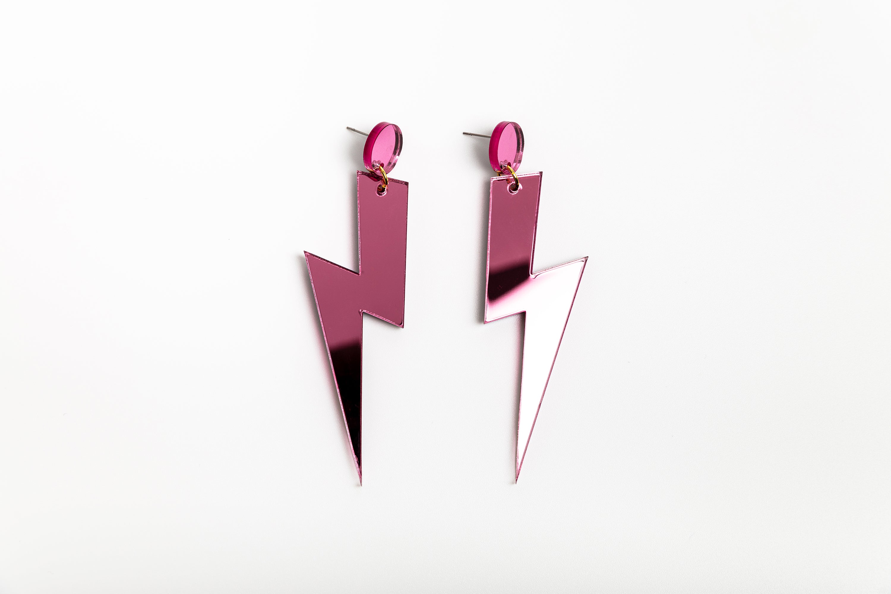 Pink Mirror Bolt Stud Earrings