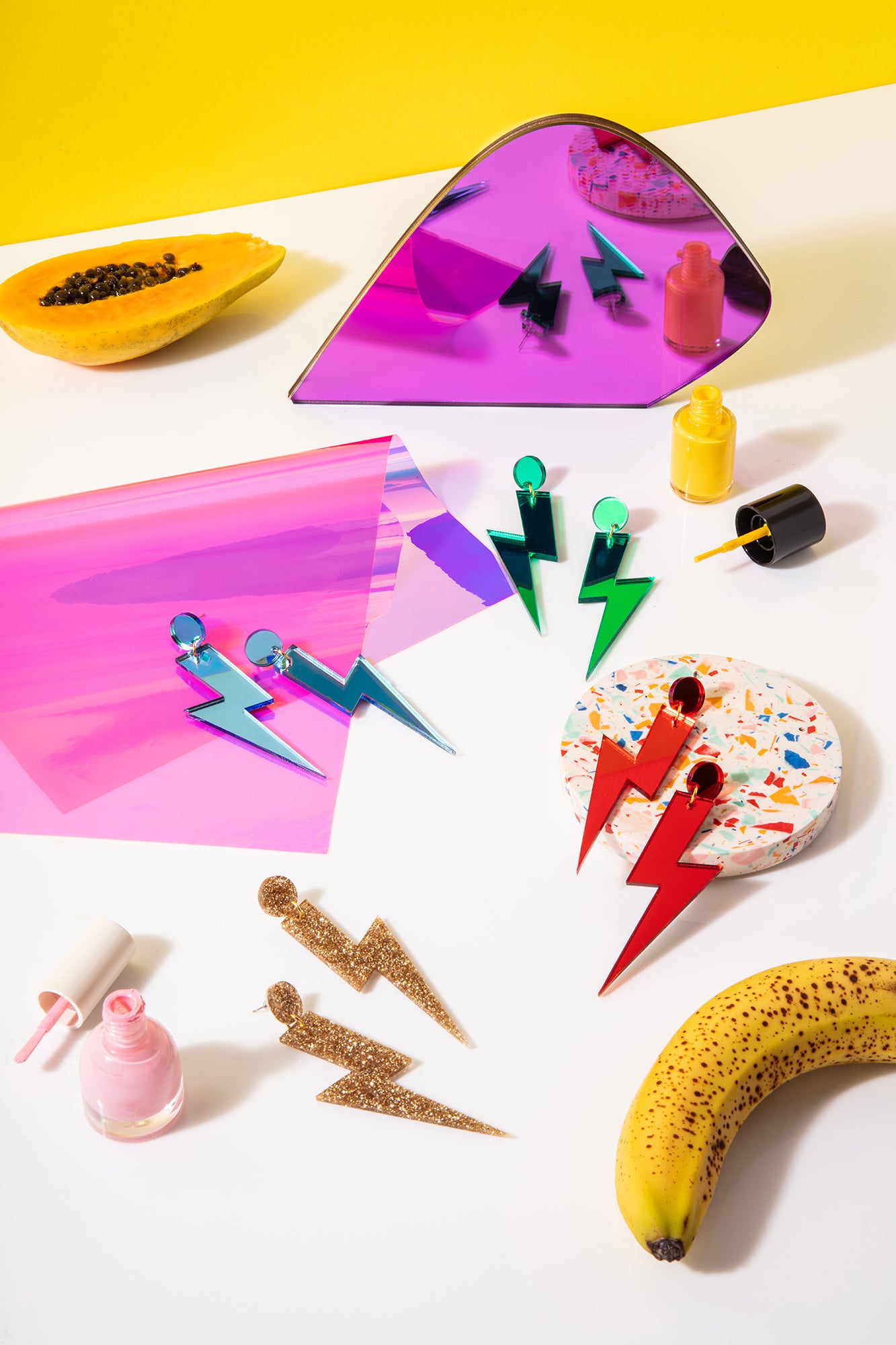 Pink statement lightning bolt earrings