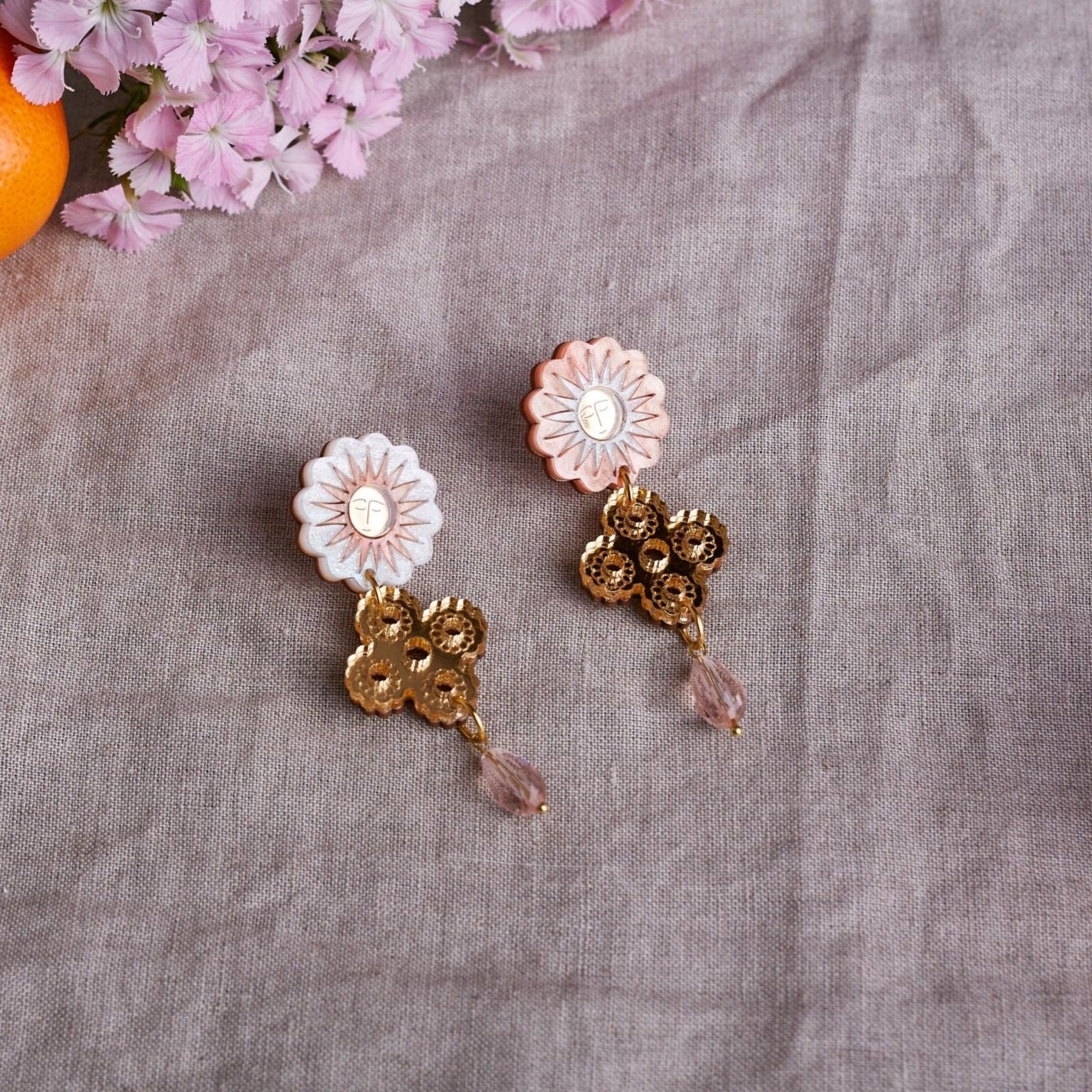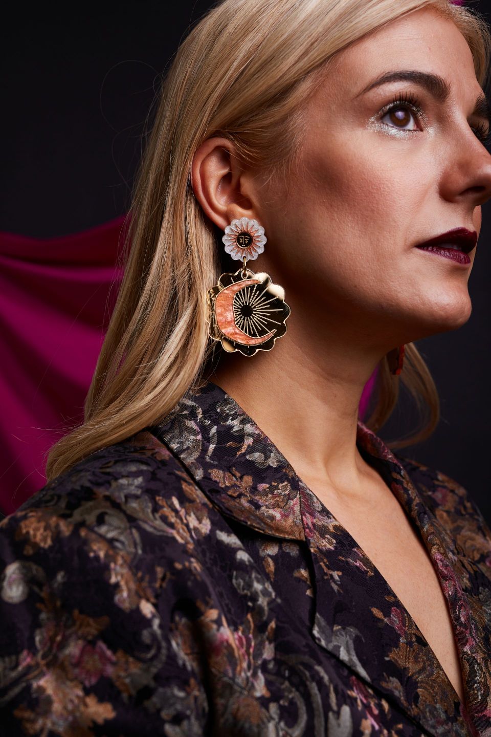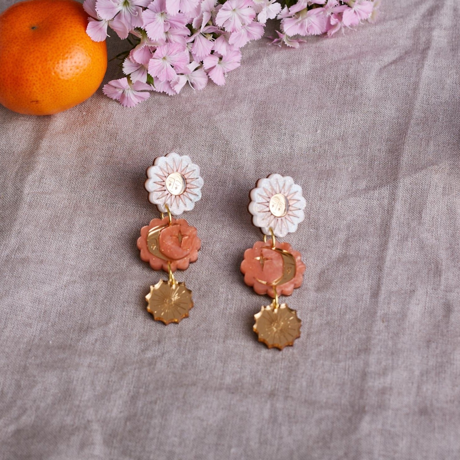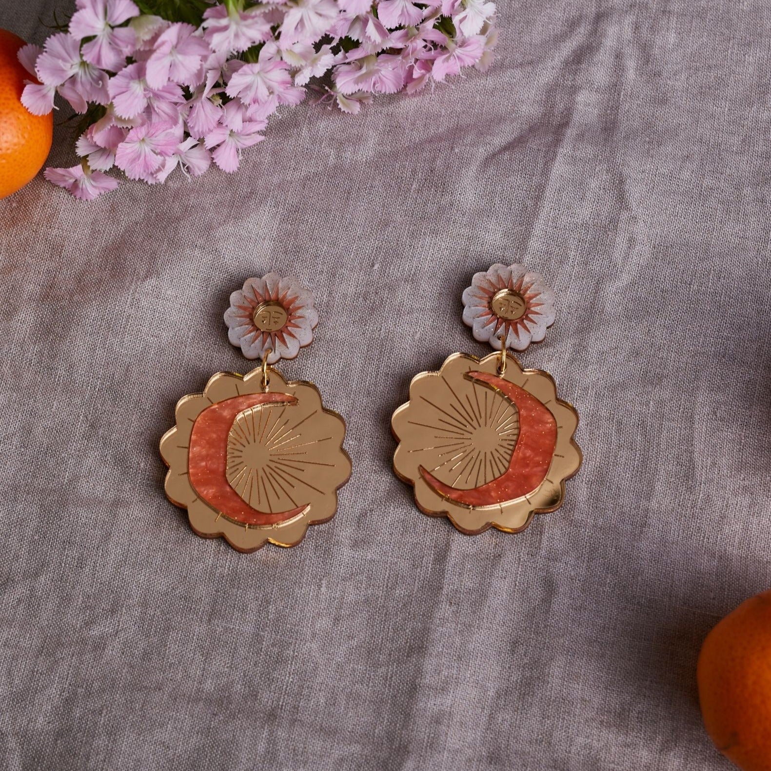 Celestial Statement Sun Moon Stud Earrings- Peach