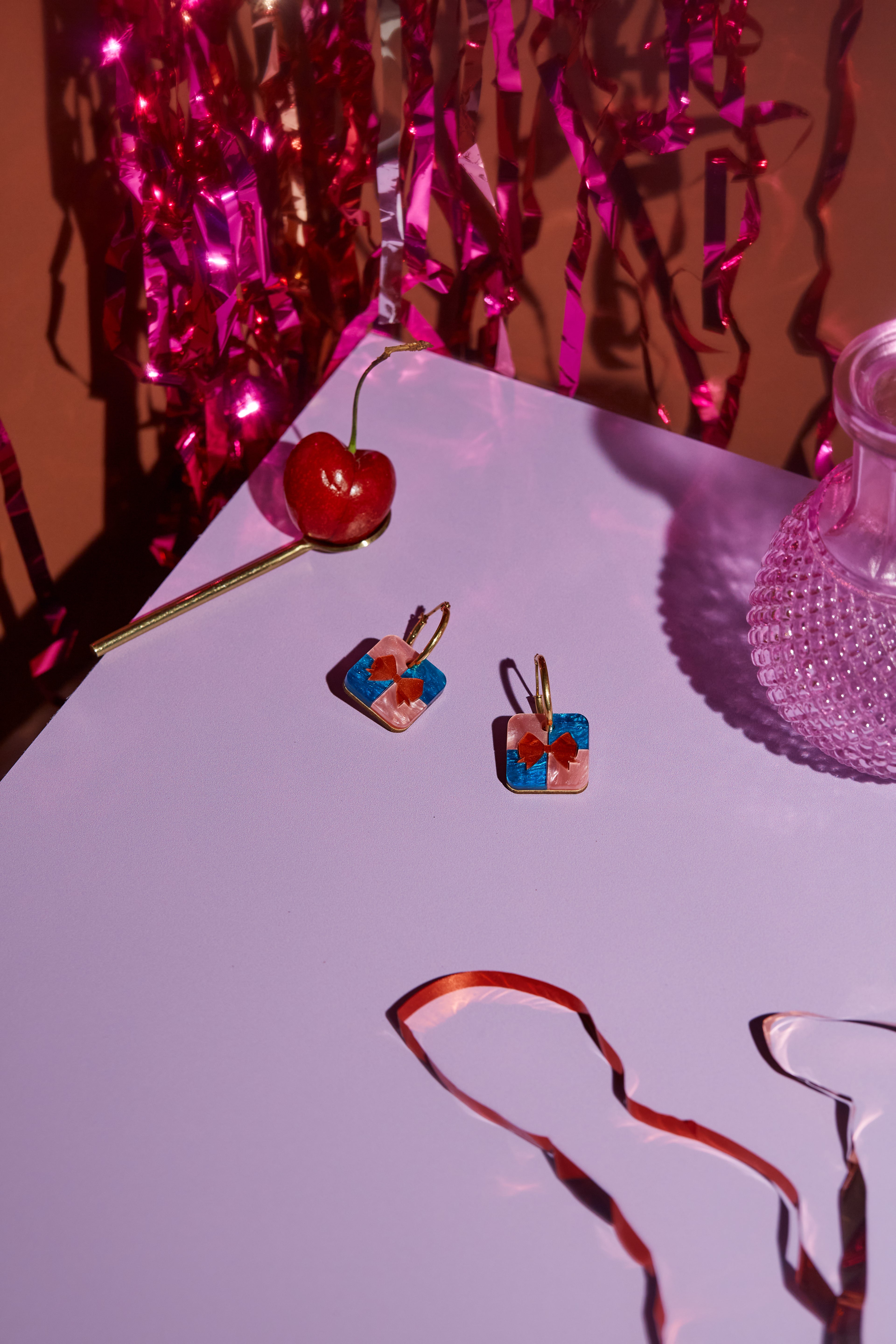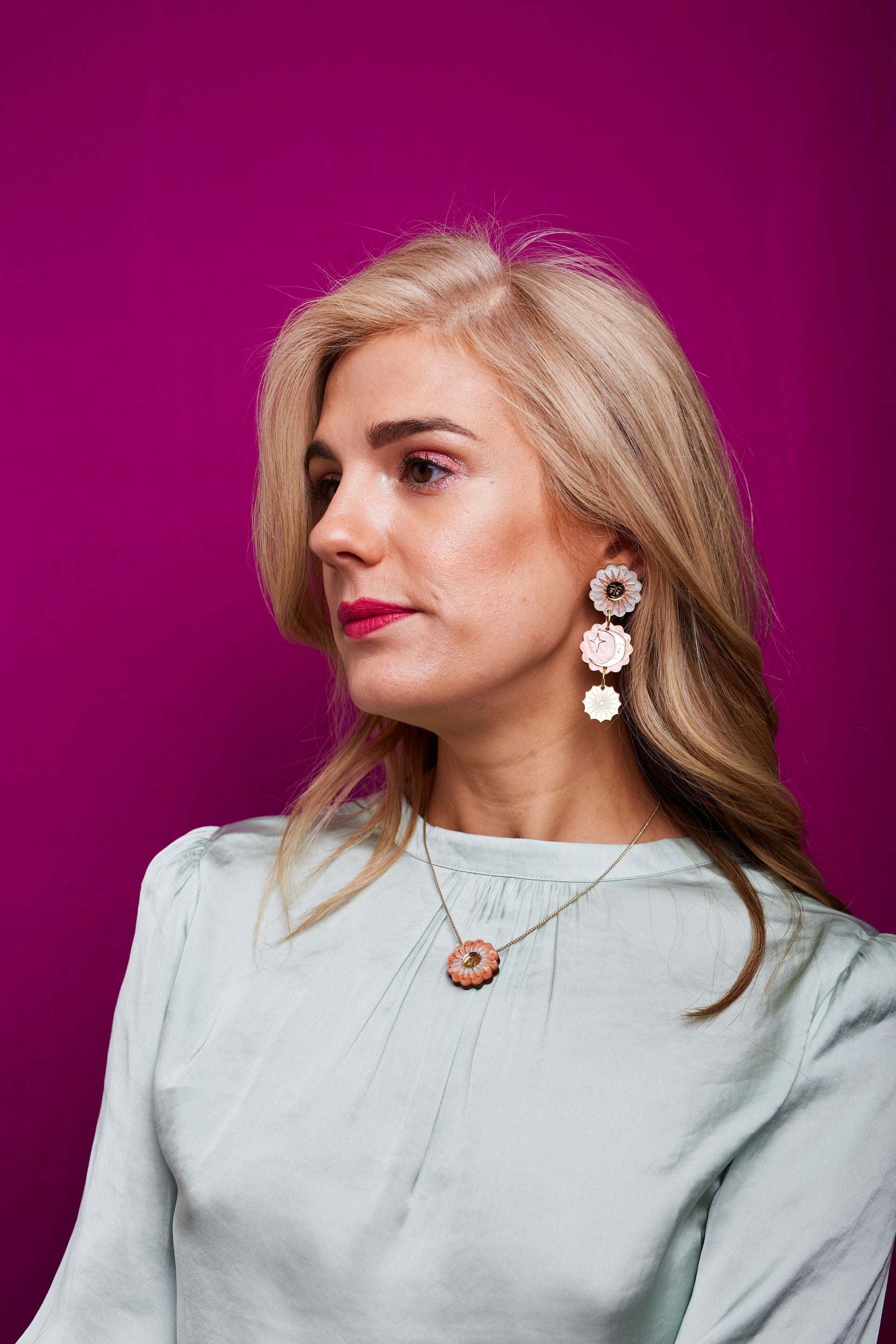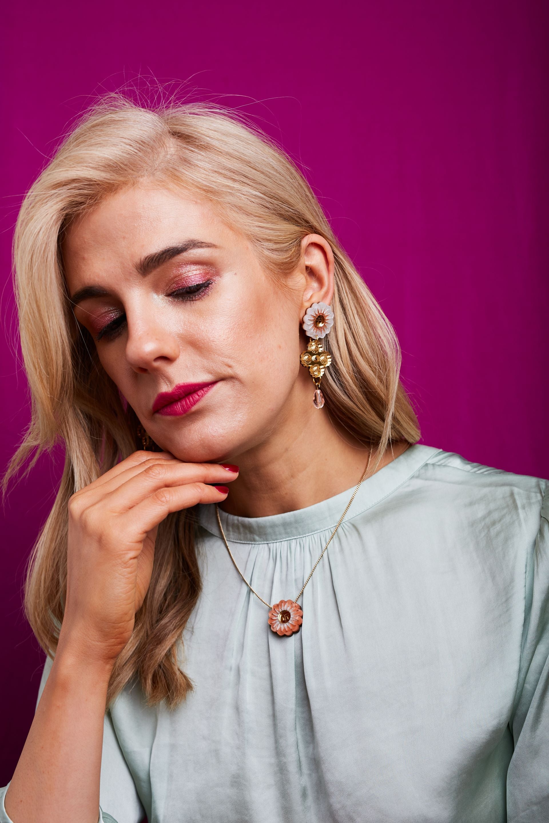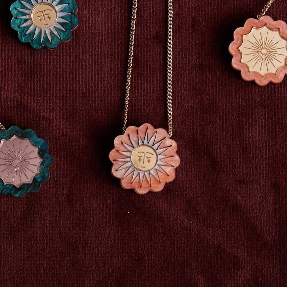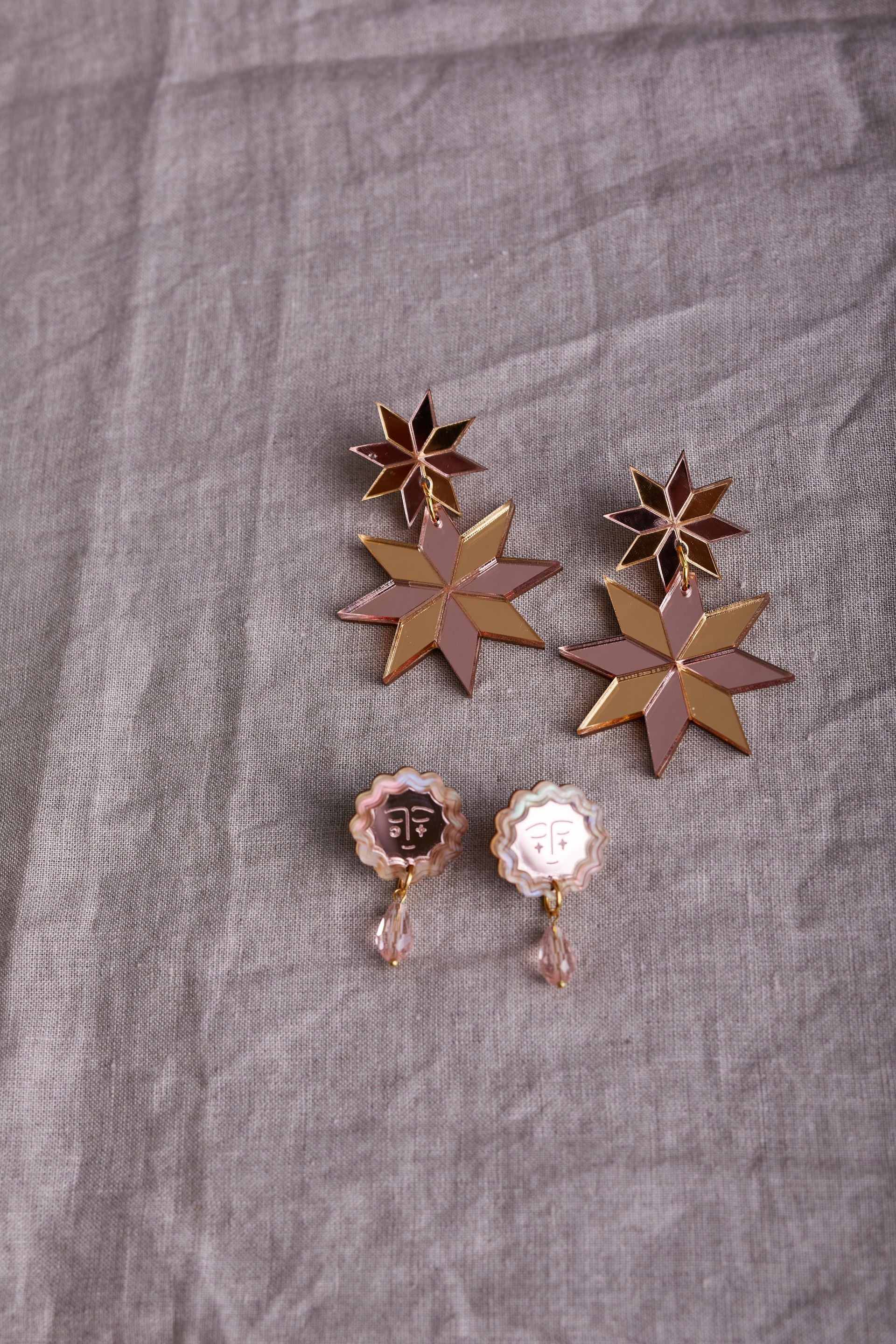 Celestial Statement Sun Moon Stud Earrings- Peach