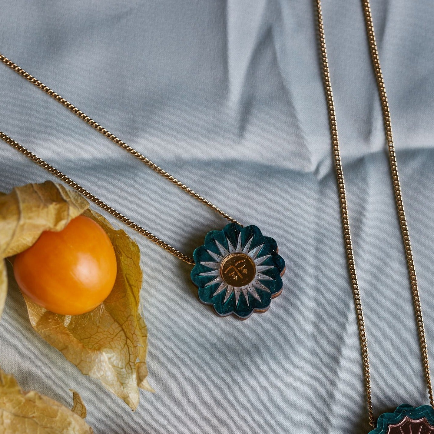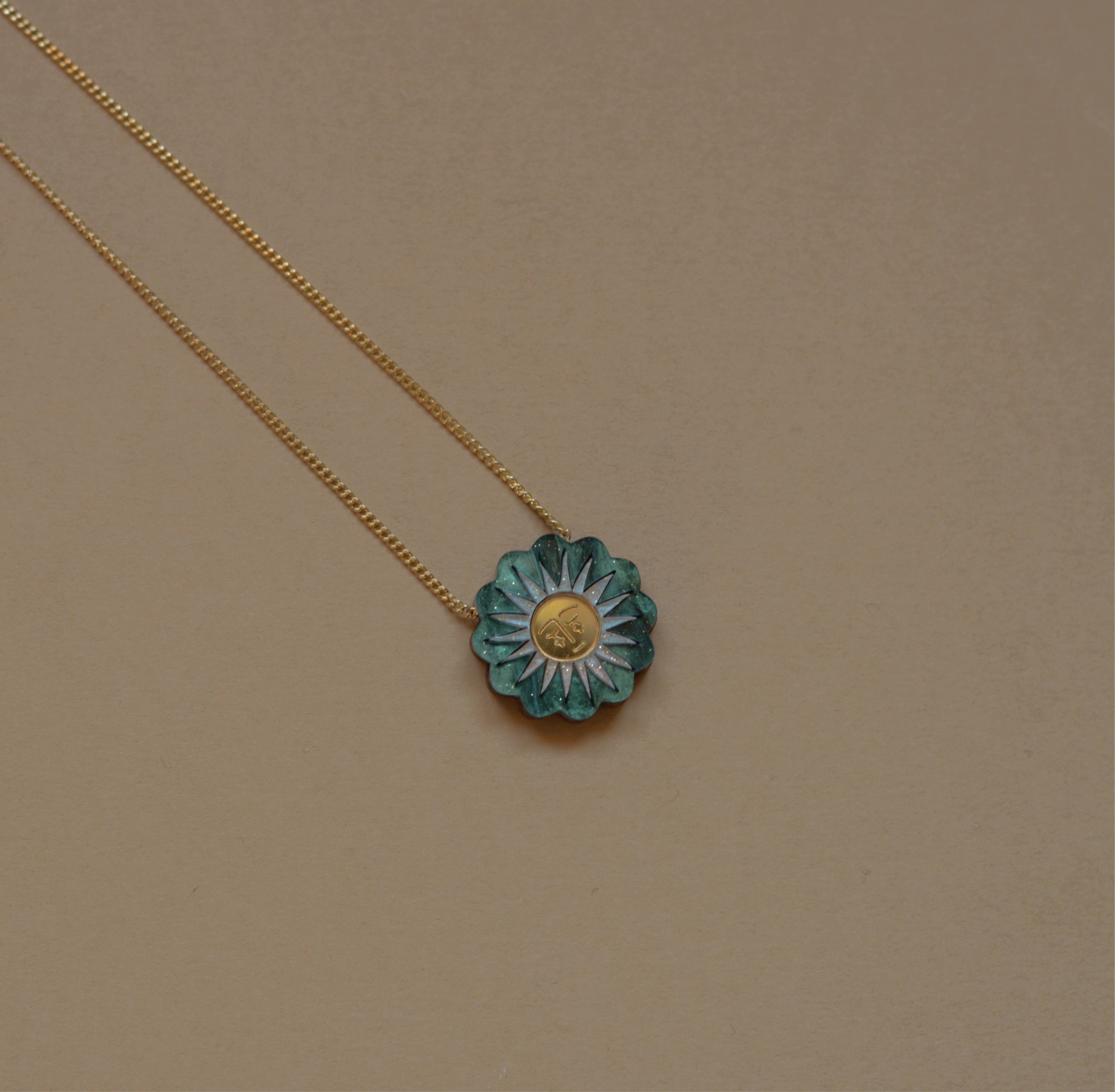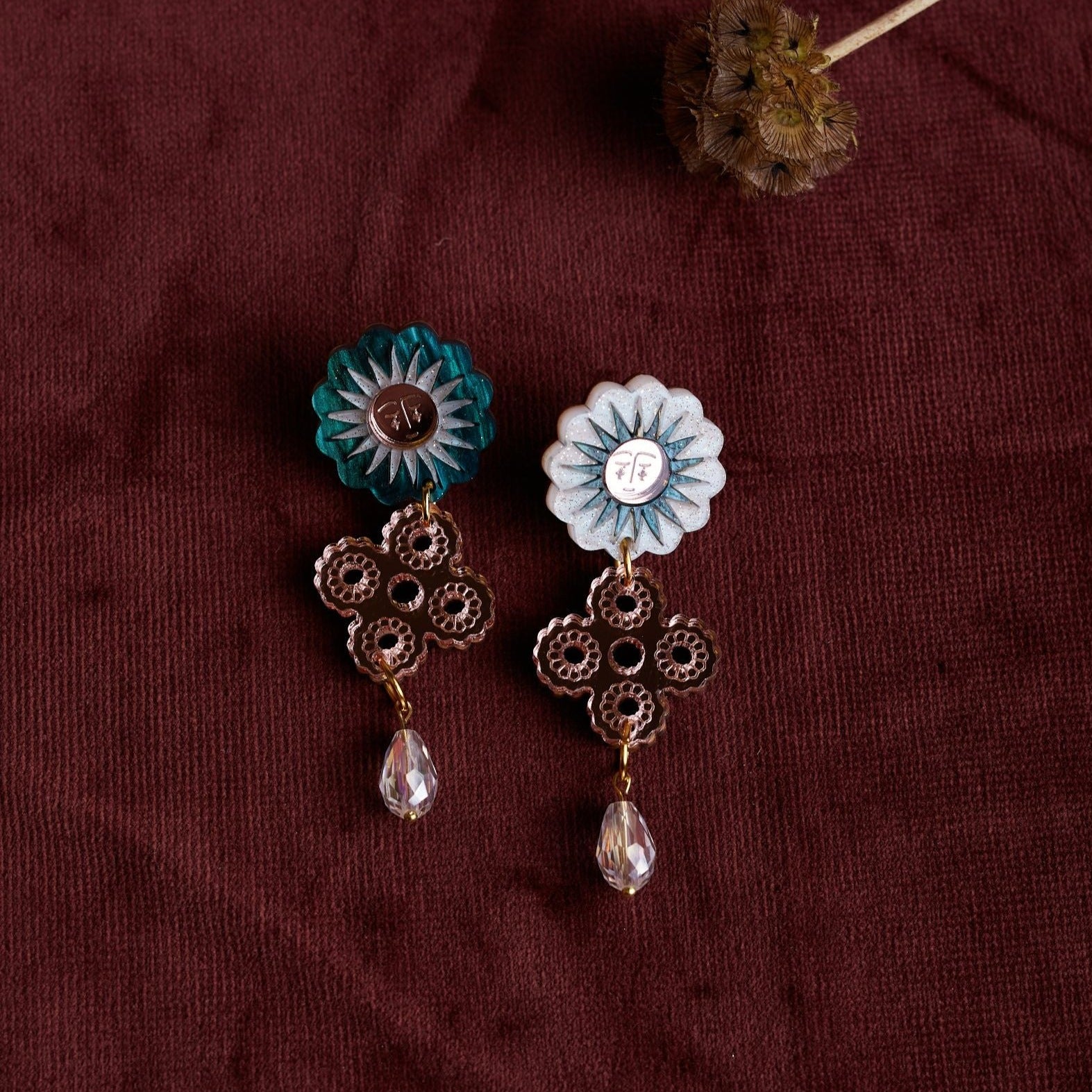 Celestial Statement Sun Moon Stud Earrings- Teal