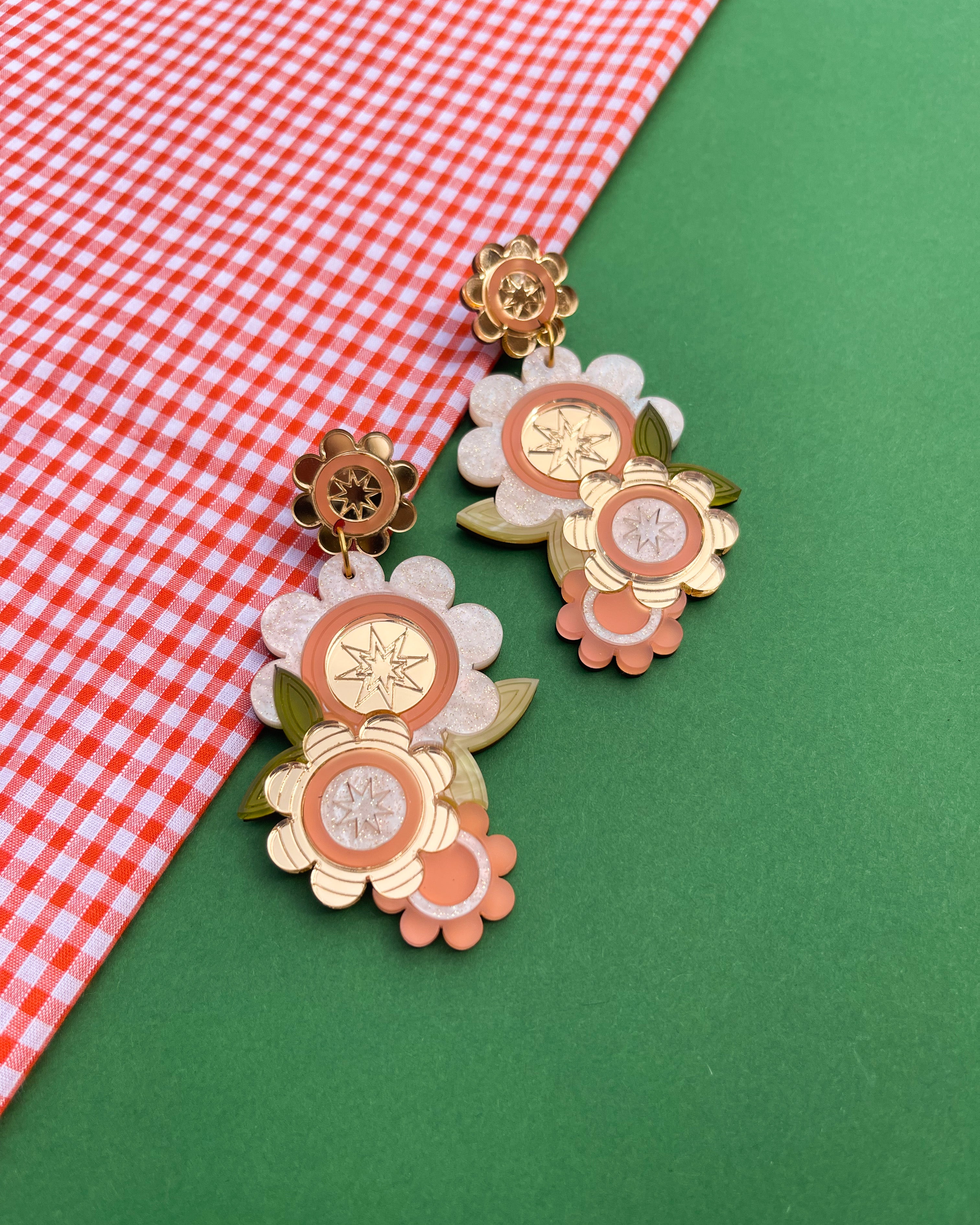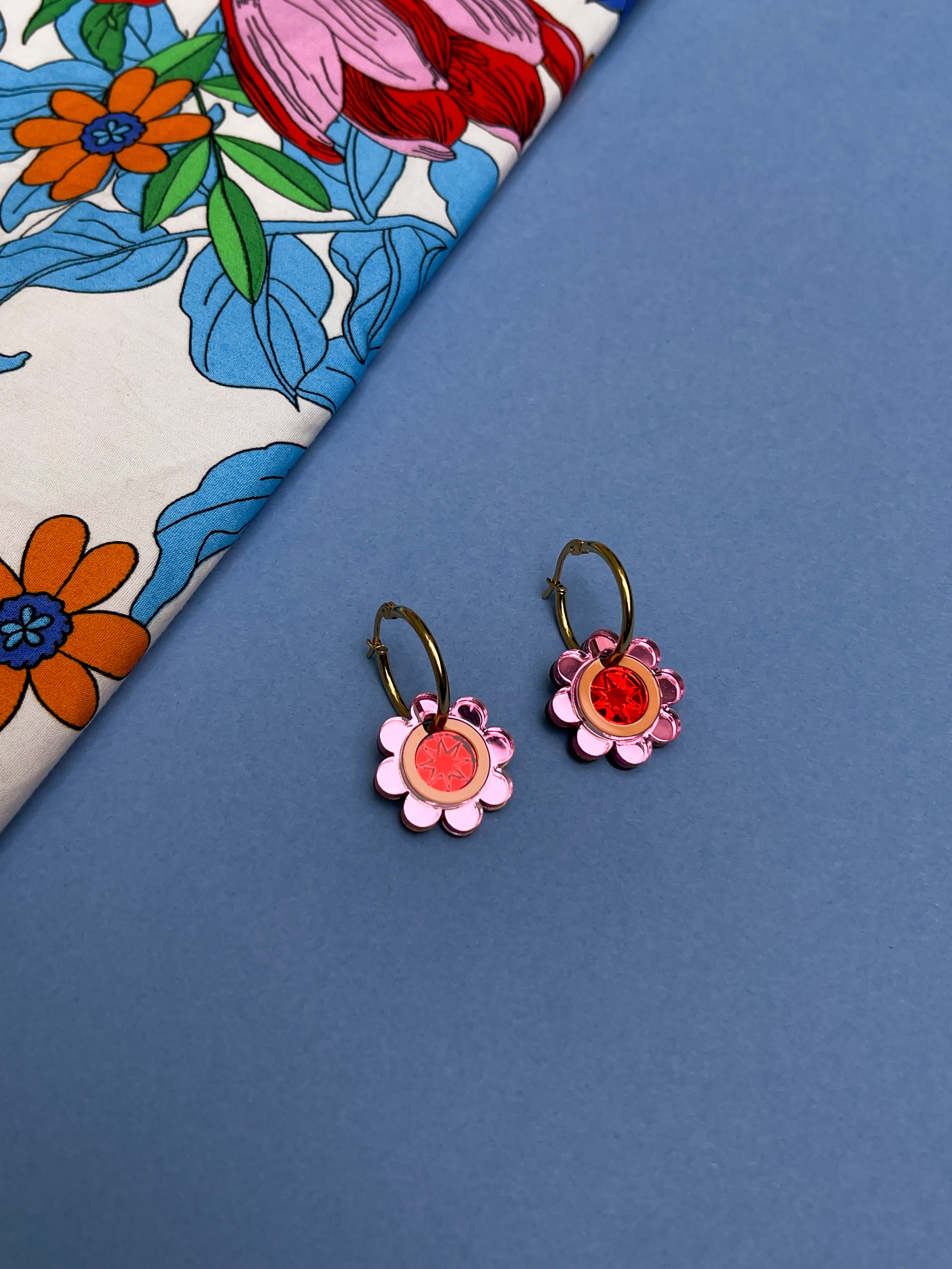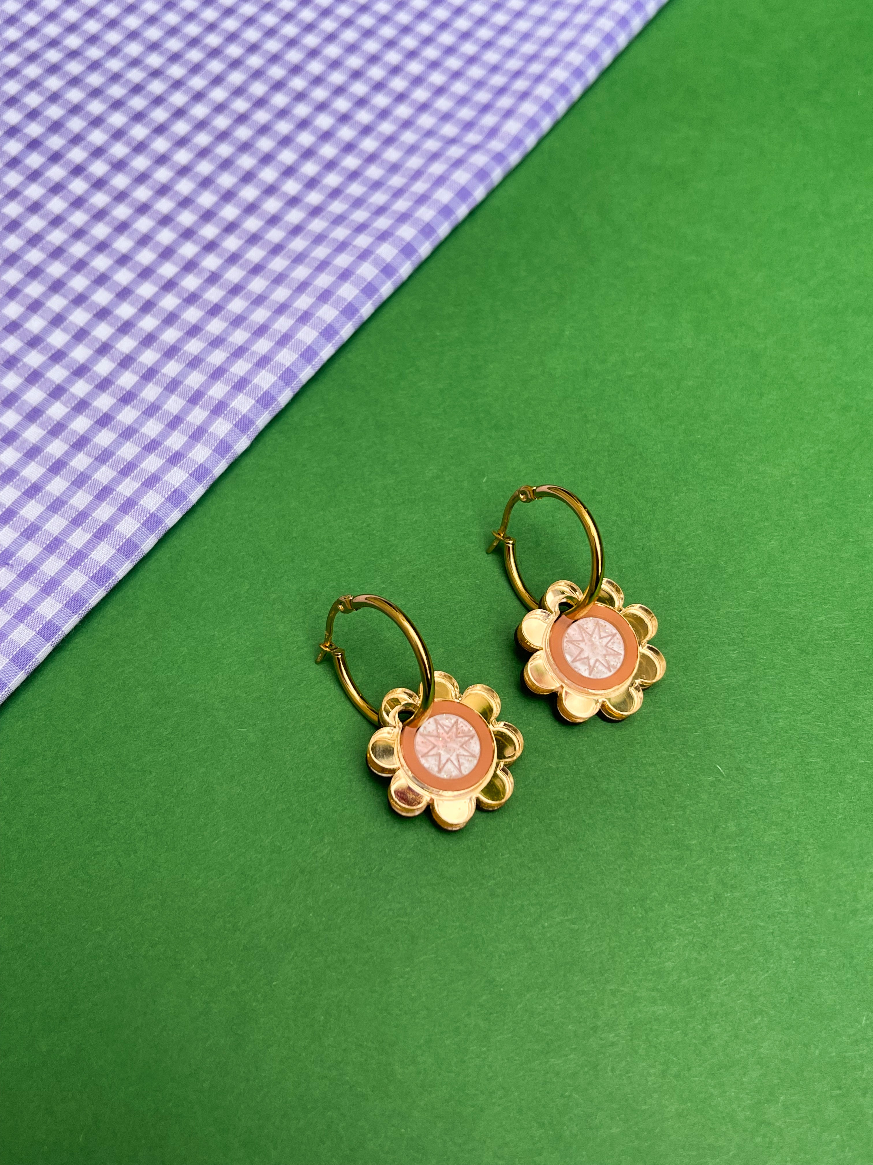 Superstar Folk Mini Hoop Earrings, pink/peach