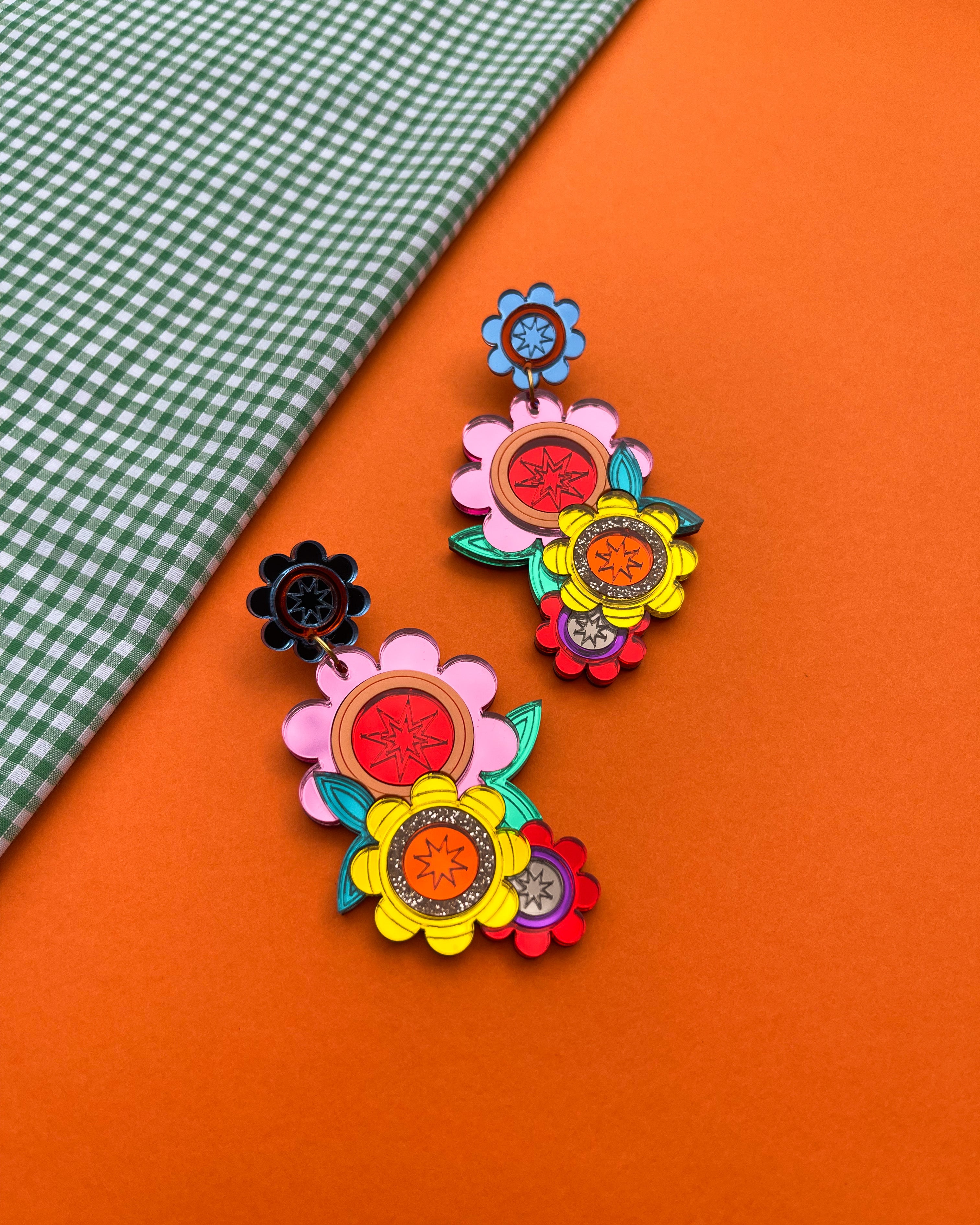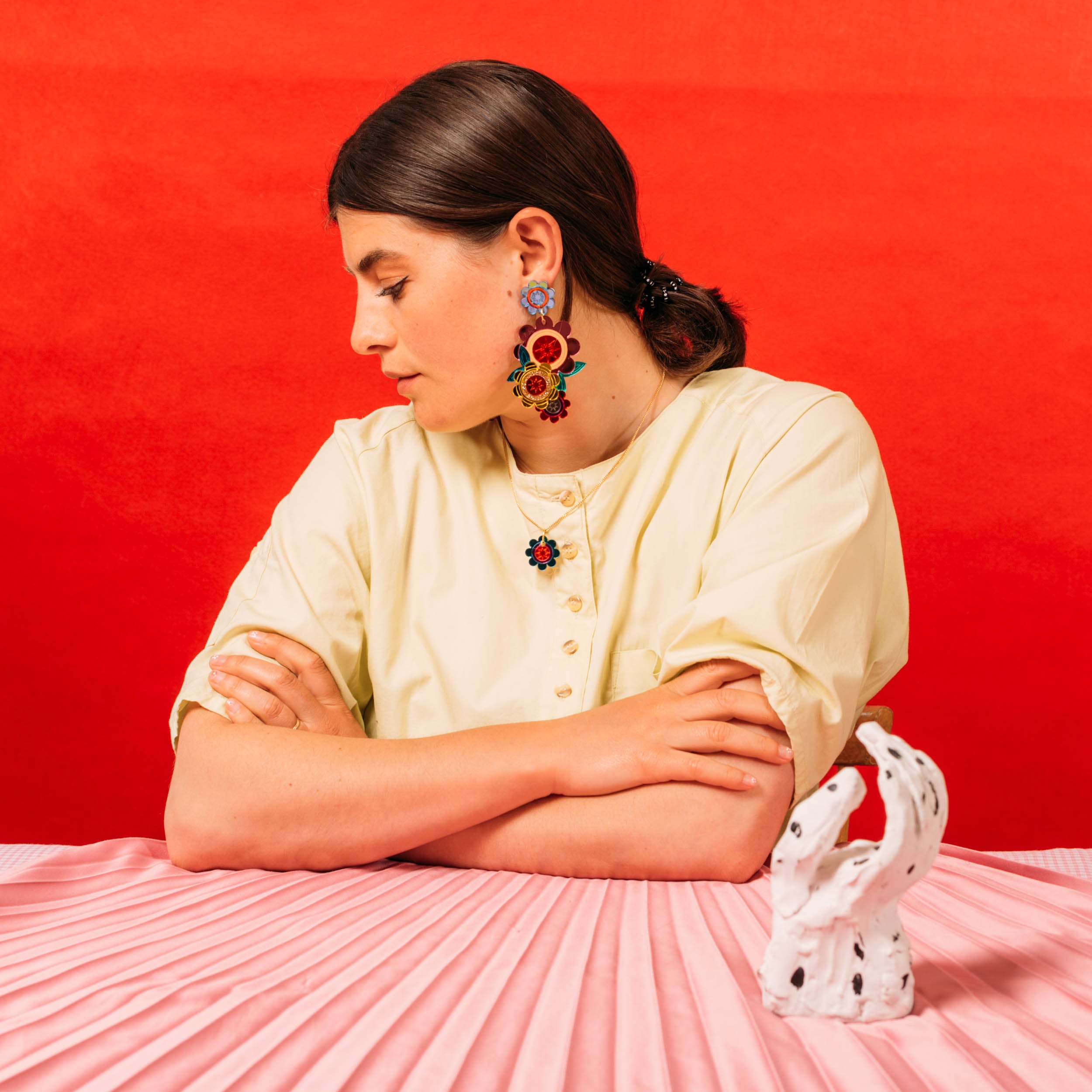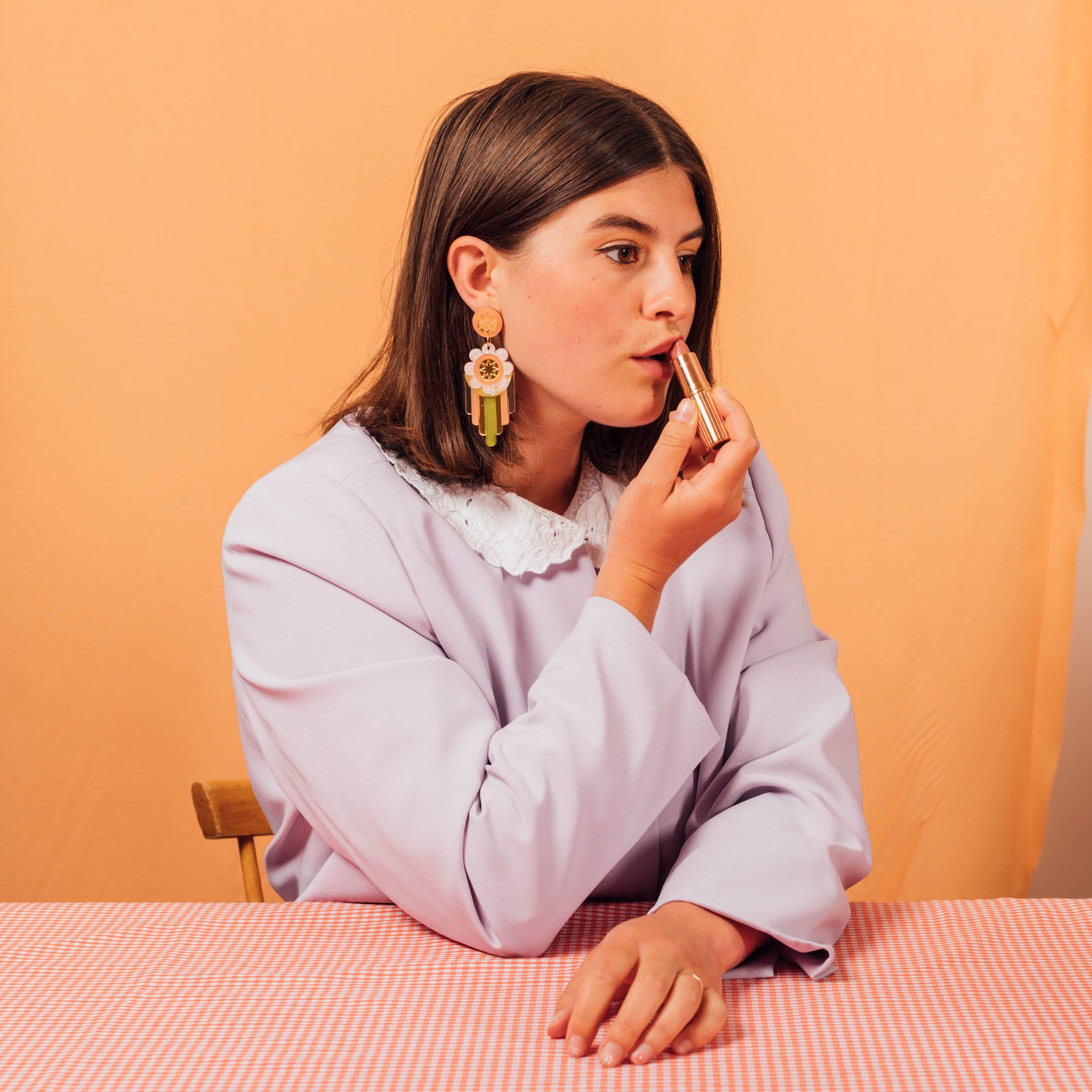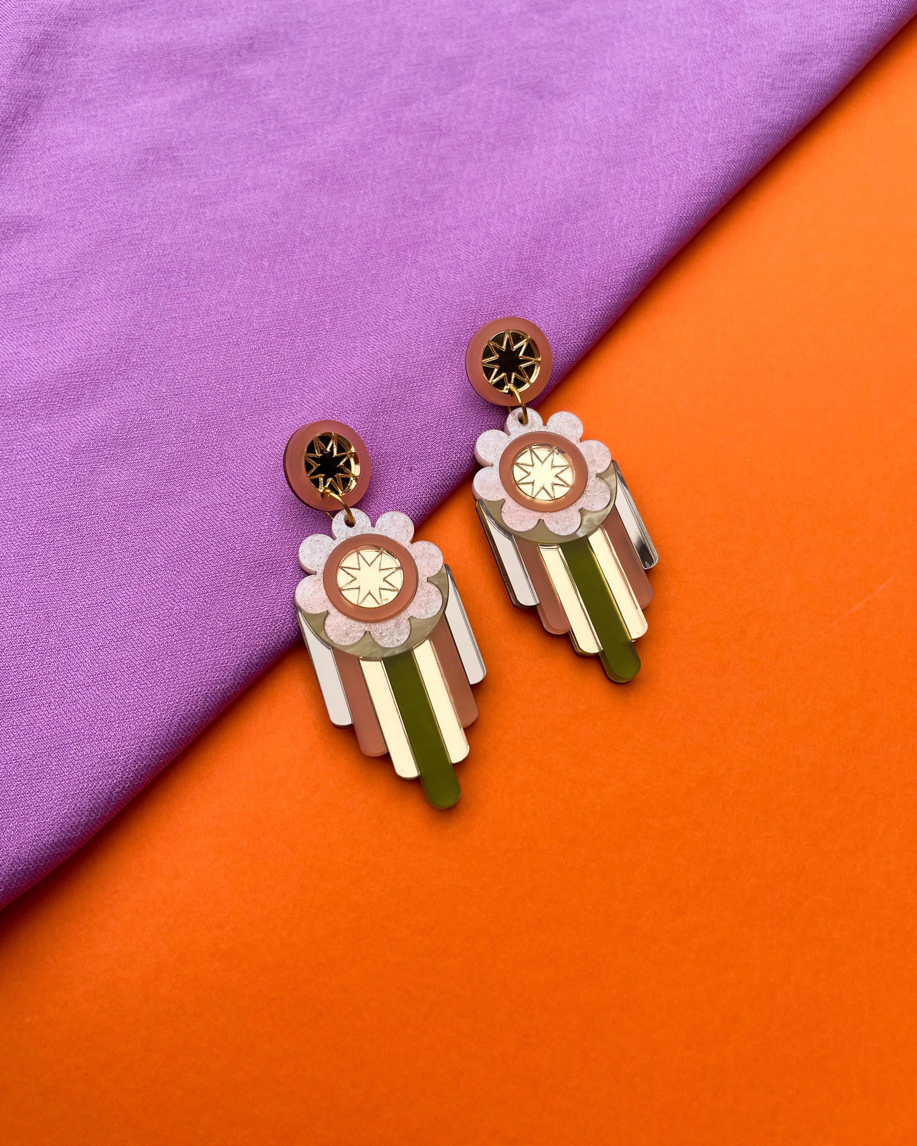 Superstar Folk Mini Hoop Earrings, pink/peach