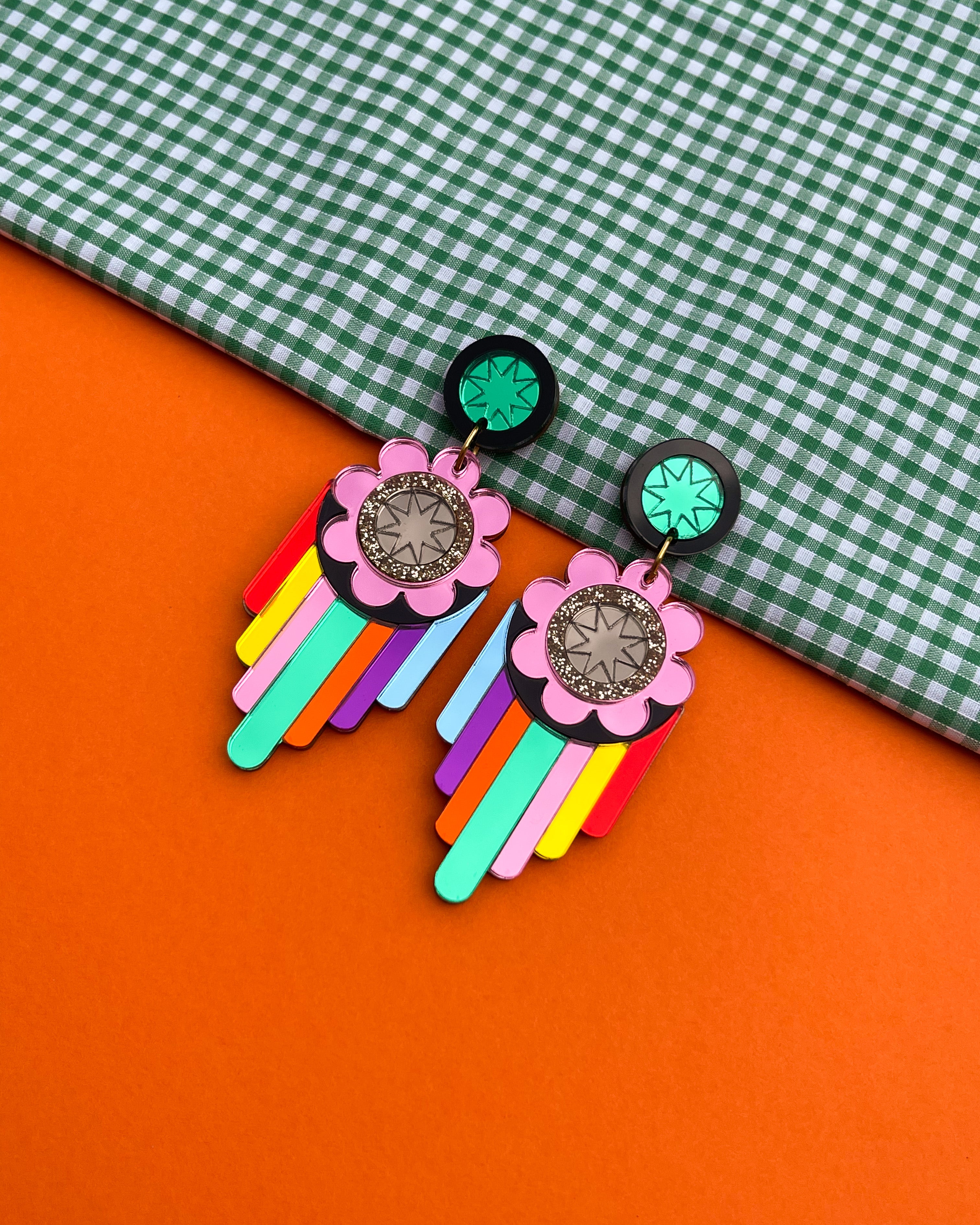 Superstar Folk Mini Hoop Earrings, frost pink/gold