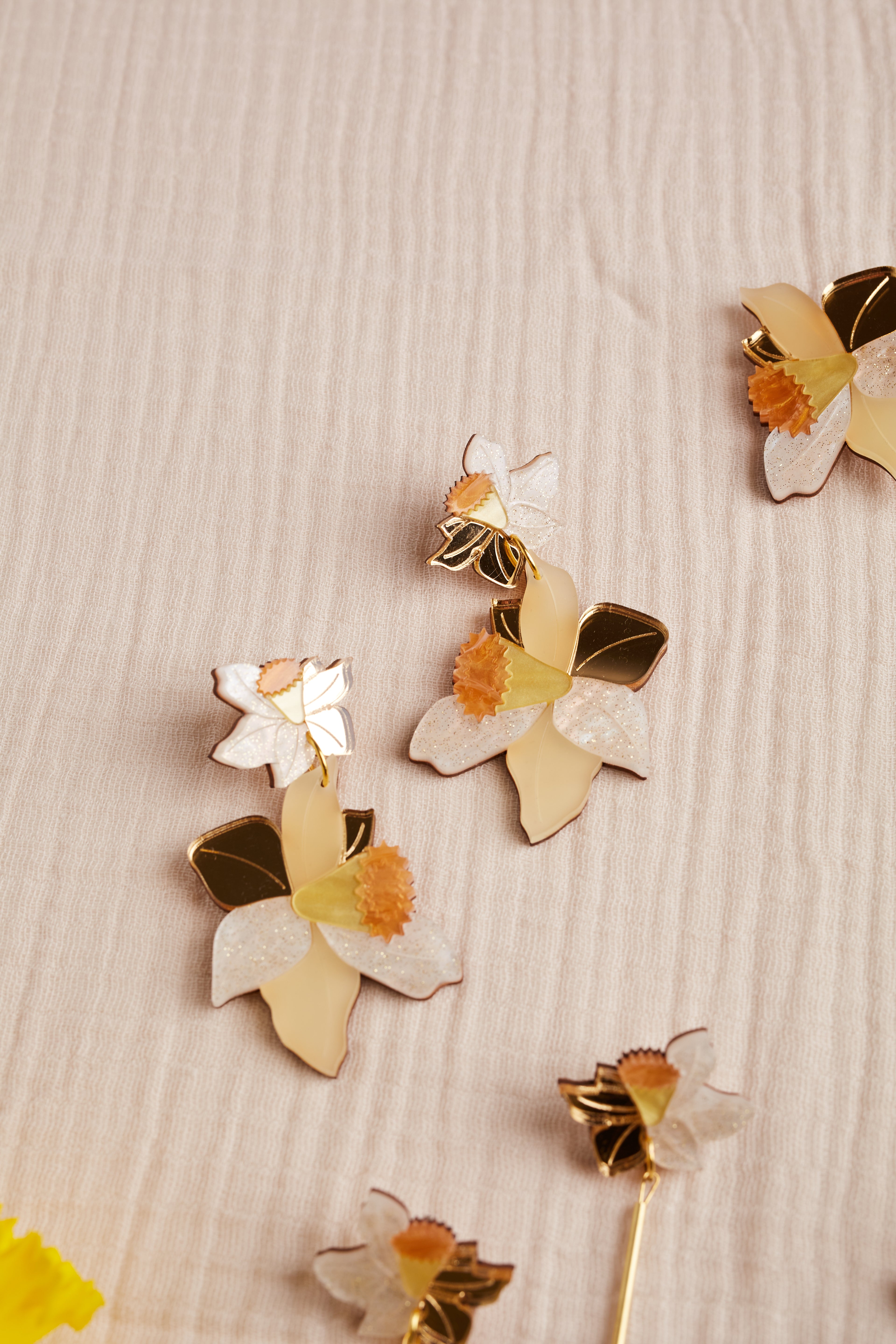 Daffodil Brass Drop Earrings IVORY