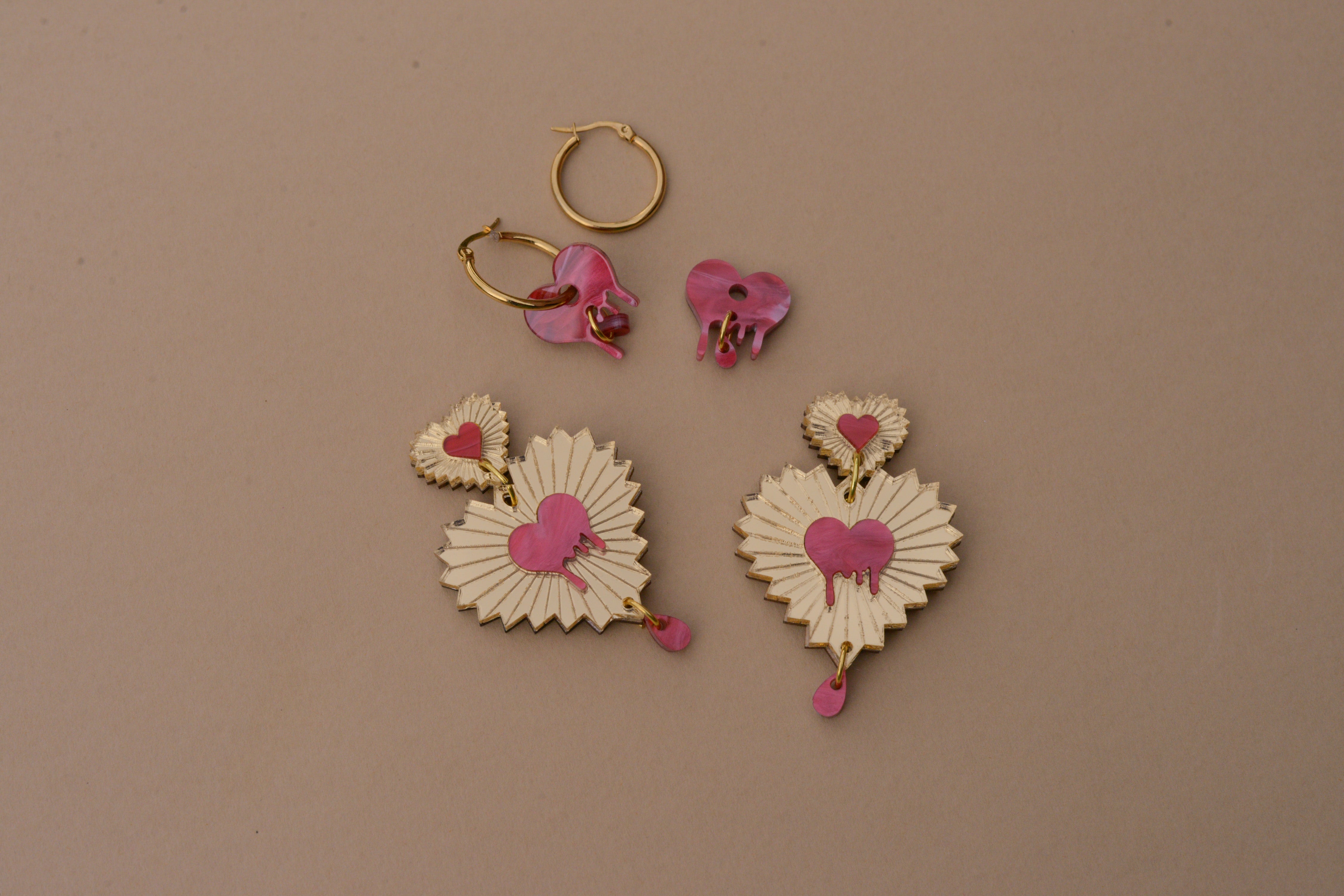 My offering for the lovers out there this Valentines are these, my explosively decadent zigzag hearts. Cut from rich marble and pearl acrylic, in a multitude of styles and budgets to suit everyone.